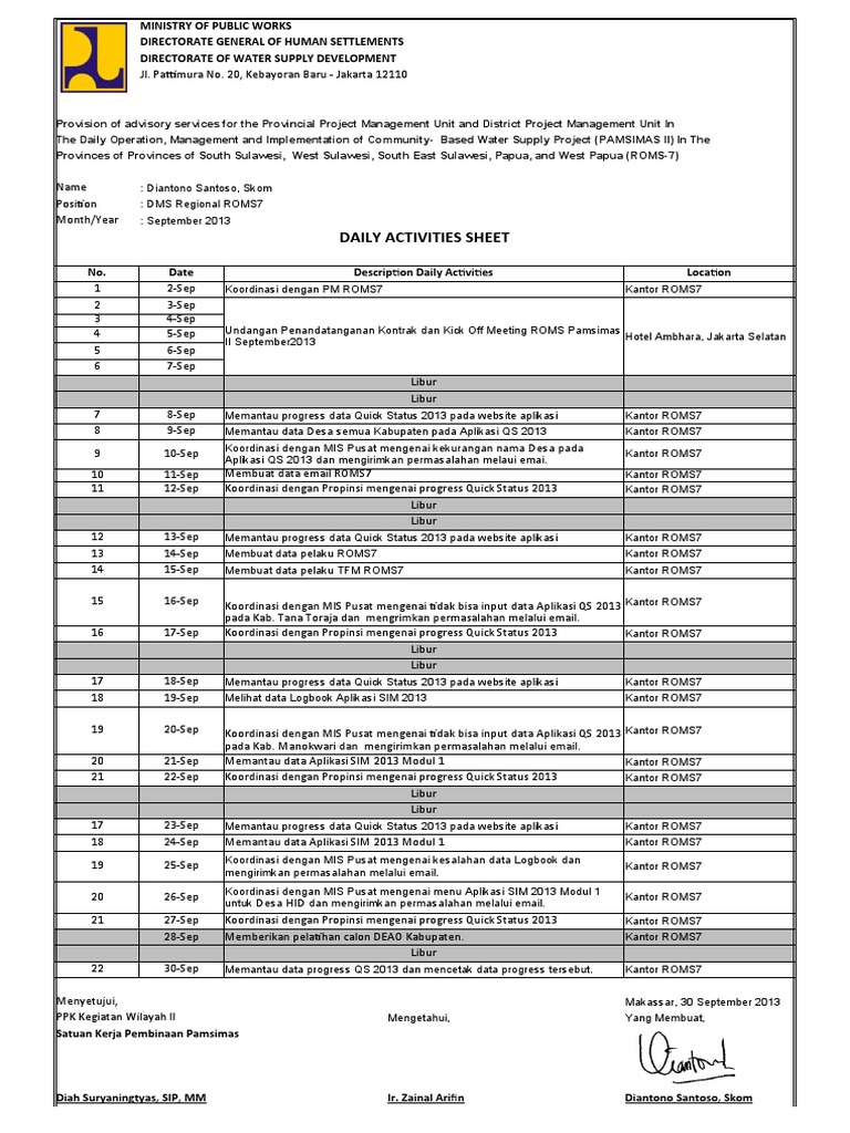 Daily Activities Sheet PDF