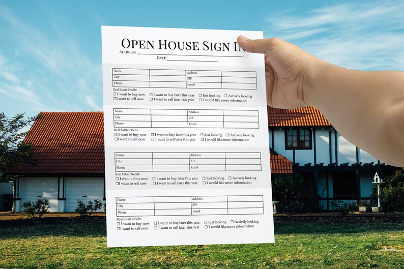Open House Sign in Sign Sheet, Open House List, Real Estate Agent