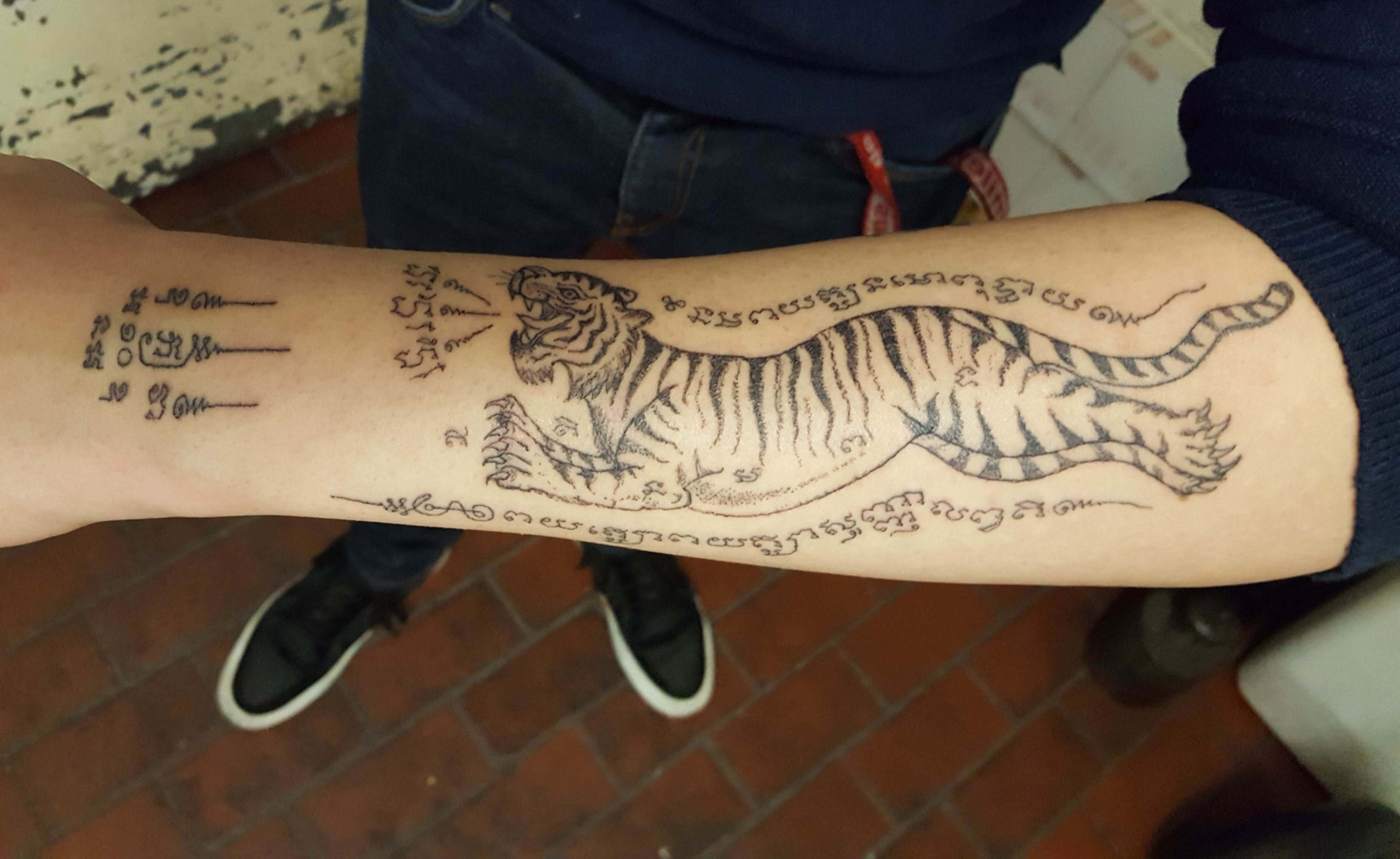 The twin tiger sak yant tattoo is common among thai people with dangerous occupations and muay thai fighters. Sak yant tattoo, suea koo is a favorite with muay thai fighters who wish to emulate the strength and the power of a tiger in the ring. The sak yant tiger tattoo suea phen, or leaping tiger, is a tattoo design believed.